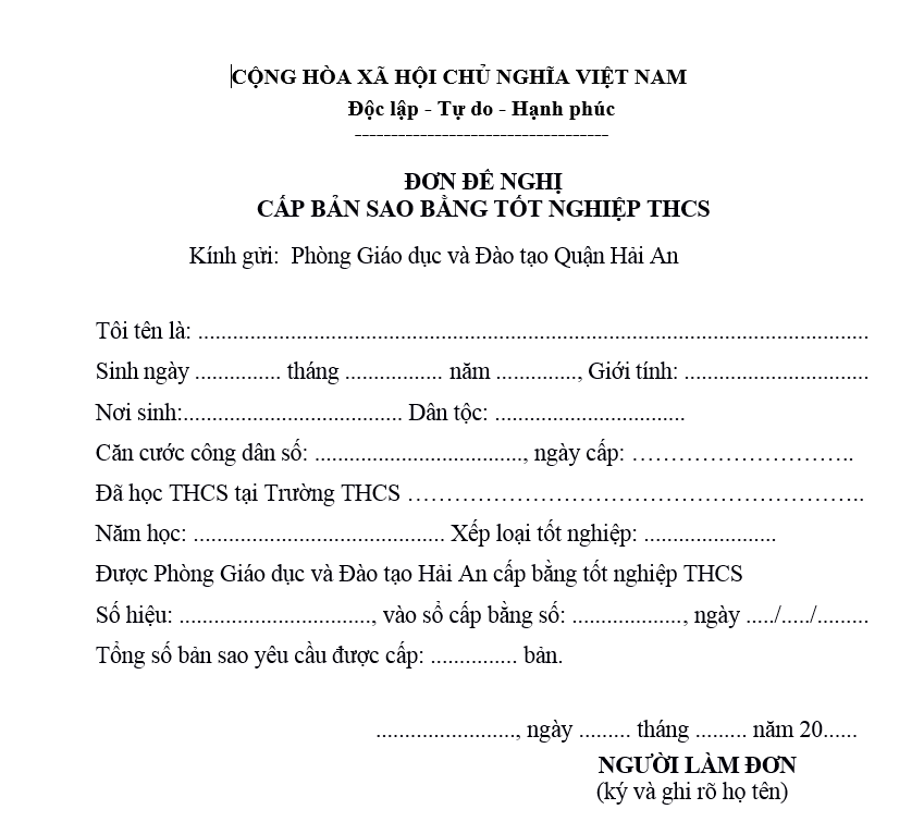 Tải mẫu đơn cấp bằng tốt nghiệp THCS tại đây: