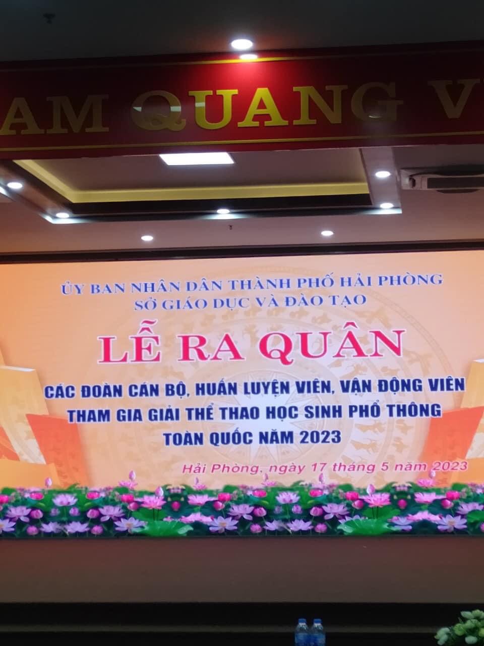 Thực hiện công văn số 1274/SGDĐT-GDTrH của Sở Giáo dục và đào tạo Hải Phòng ngày 12/5/2023 về việc mời dự Lễ ra quân các Đoàn cán bộ, huấn luyện viên, vận động viên tham gia Giải thể thao học sinh phổ thông toàn quốc,đại diện Ban Giám hiệu trường THCS Đằng Lâm: Đ/c Trịnh Thị Tố Uyên cùng học sinh Trần Ngọc Hải (lớp 6A10) đã tham dự Lễ ra quân.