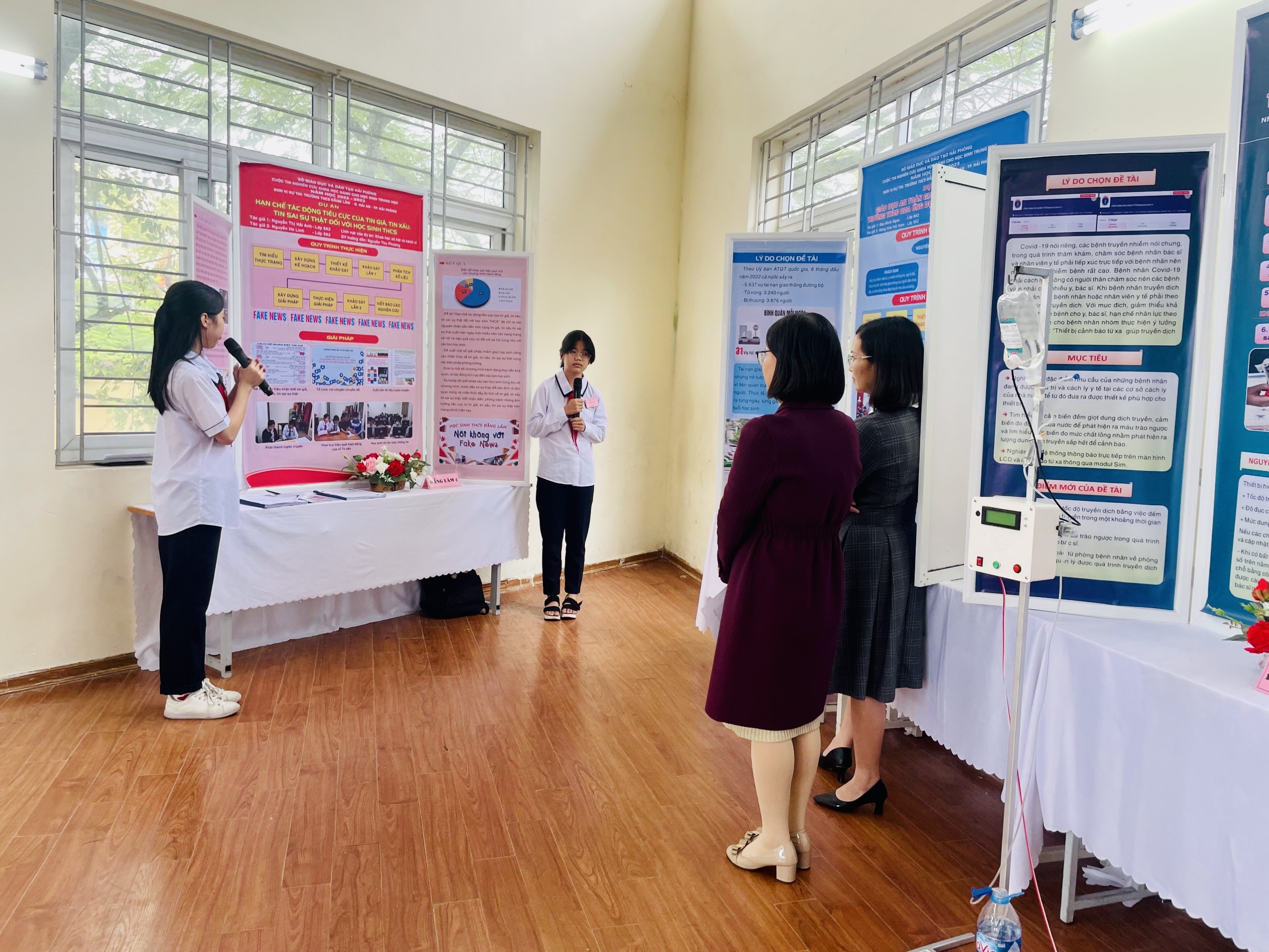 Ngày 21/10/2022, 8 học sinh cùng các giáo viên hướng dẫn trường THCS Đằng Lâm tham gia cuộc thi KHKT cấp quận năm học 2022-2023. Toàn trường có 04 sản phẩm dự thi ở các lĩnh vực: khoa học xã hội hành vi, hệ thống nhúng. Trong Cuộc thi đã có nhiều dự án thể hiện được tính sáng tạo, có sự đầu tư nghiên cứu công phu, phương pháp nghiên cứu khoa học và sản phẩm nghiên cứu có giá trị thực tiễn. Các em học sinh dự thi cũng đã thể hiện sự tự tin, sáng tạo của các em học sinh thông qua quá trình thuyết minh dự án, đồng thời khẳng định được rằng các em đã nắm vững kiến thức để nghiên cứu, vận dụng để giải quyết các vấn đề nảy sinh trong thực tiễn cuộc sống hằng ngày. Cuộc thi đã giúp các em học sinh có thêm hứng thú học tập, sử dụng kiến thức liên môn giải quyết các vấn đề trong thực tiễn cuộc sống, góp phần định hướng nghề nghiệp cho học sinh.