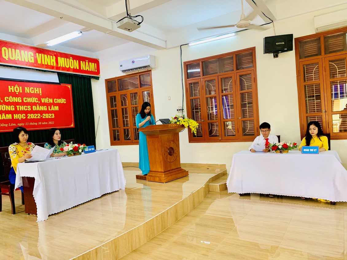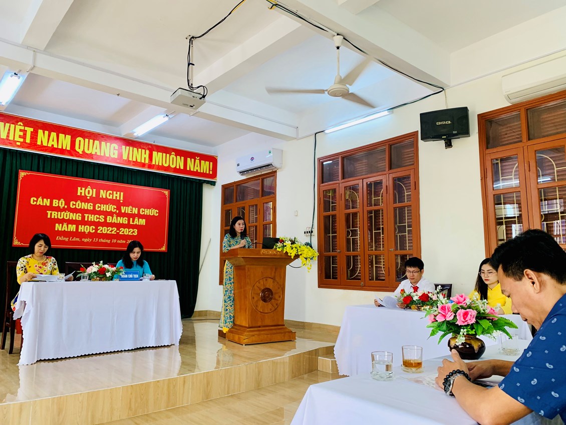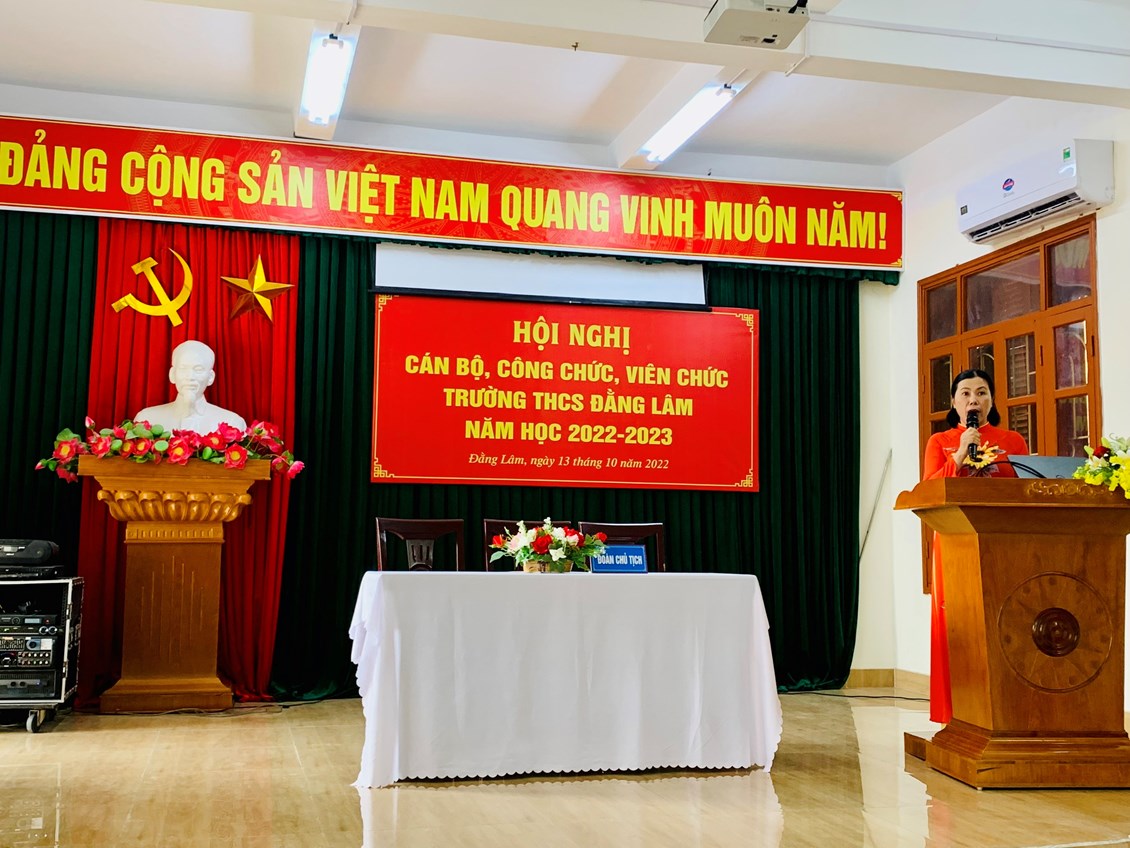 Trong không khí vui tươi và phấn khởi, sáng ngày 13/10/2022, Trường THCS Đằng Lâm hân hoan tổ chức “Hội nghị Cán bộ Công chức, Viên chức năm học 2022-2023". Hội nghị nhằm phát huy quyền làm chủ thực sự và năng lực sáng tạo của cán bộ, giáo viên, nhân viên trong quá trình thực hiện nhiệm vụ. Tới dự Hội nghị có: