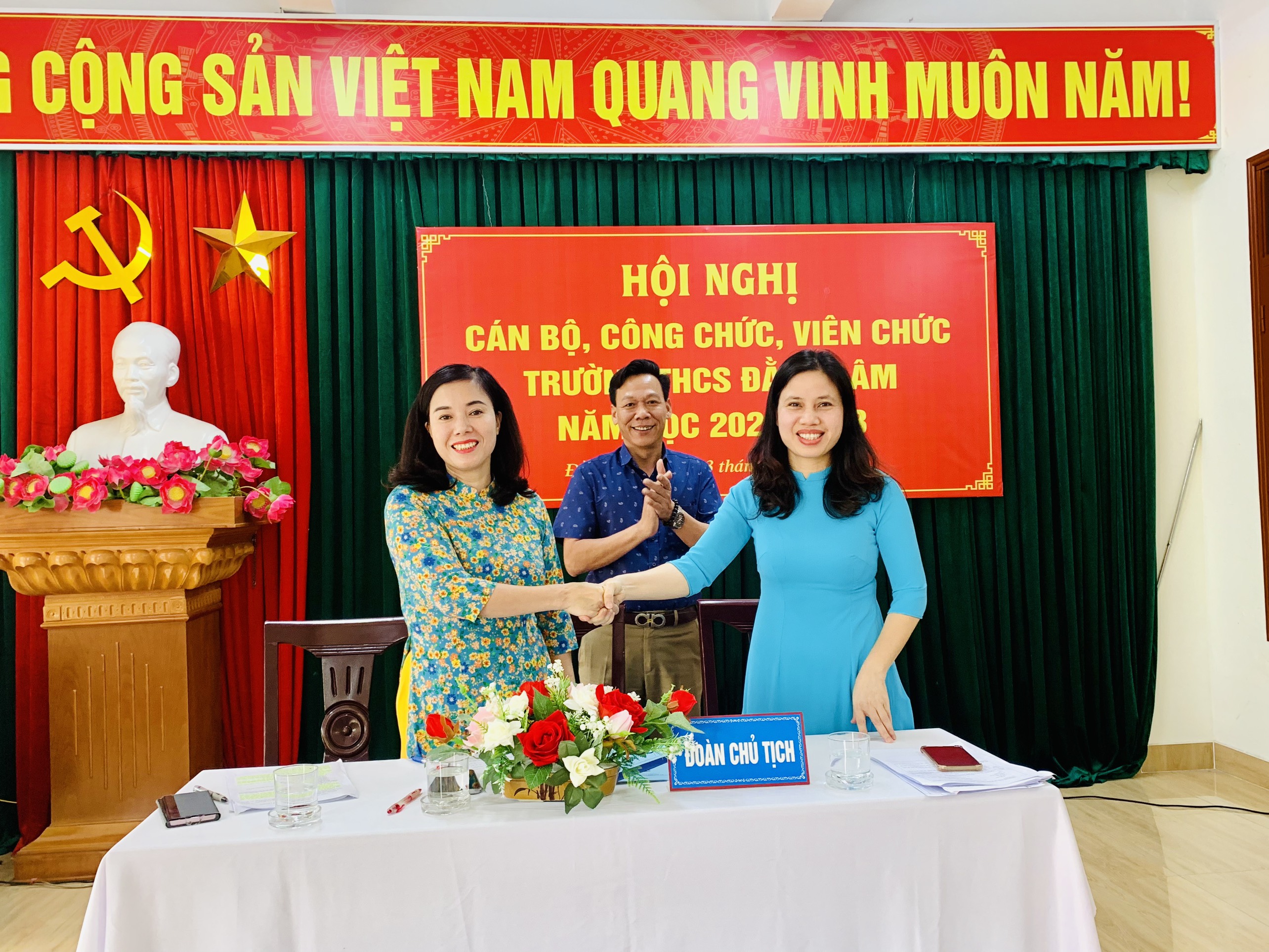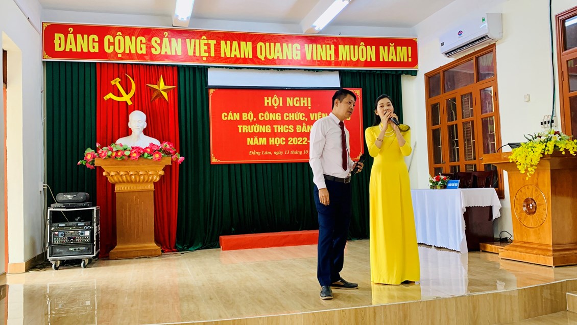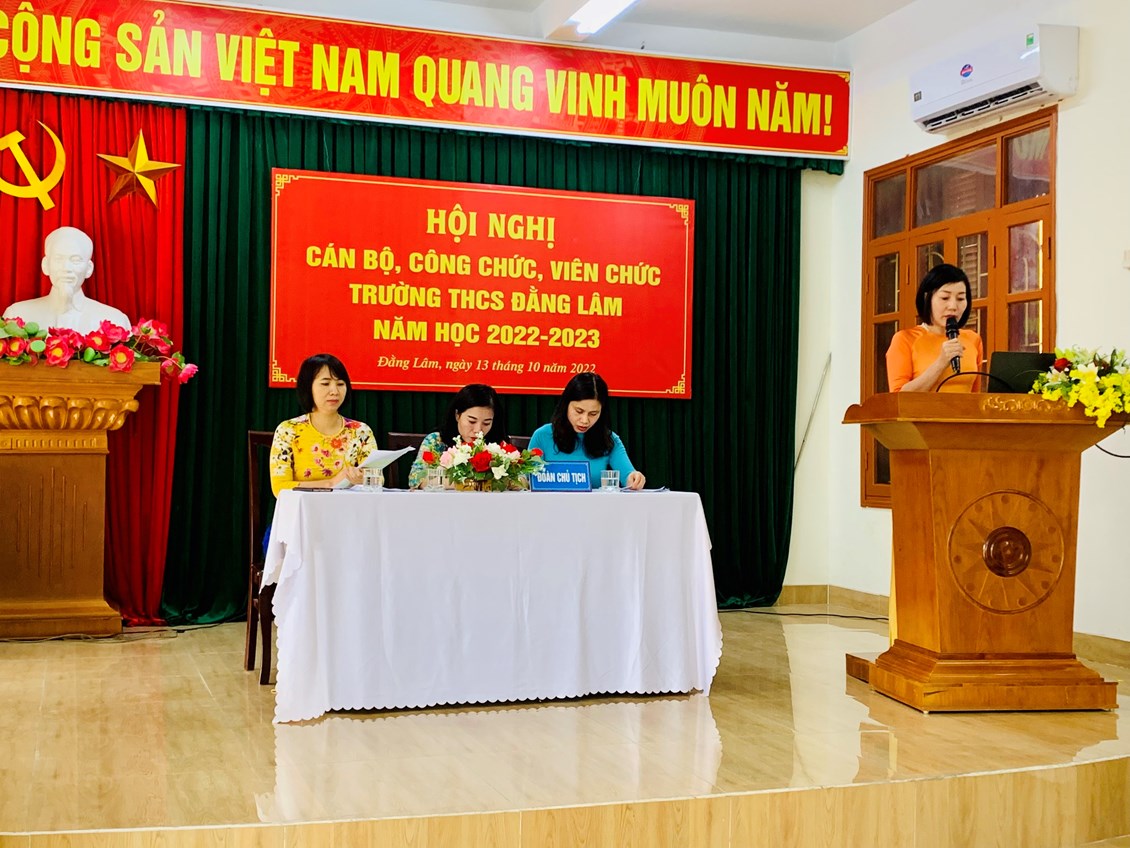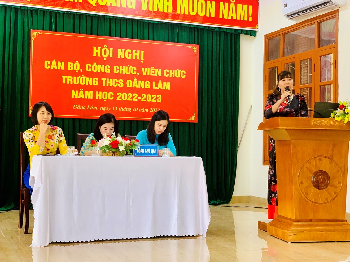 Trong không khí vui tươi và phấn khởi, sáng ngày 13/10/2022, Trường THCS Đằng Lâm hân hoan tổ chức “Hội nghị Cán bộ Công chức, Viên chức năm học 2022-2023". Hội nghị nhằm phát huy quyền làm chủ thực sự và năng lực sáng tạo của cán bộ, giáo viên, nhân viên trong quá trình thực hiện nhiệm vụ. Tới dự Hội nghị có: