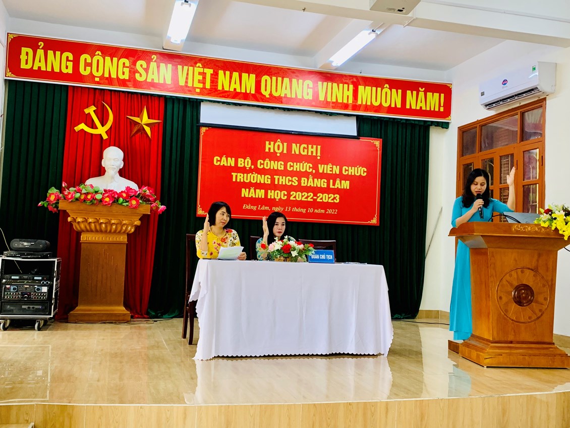 Với sự làm việc tích cực, khẩn trương, hội nghị đã đi đến biểu quyết thông qua các chỉ tiêu và giải pháp thực hiện nhiệm vụ năm học. Hội nghị Cán bộ, viên chức năm học 2022-2023 đã đã thành công tốt đẹp. Hơn bao giờ hết, mỗi cán bộ giáo viên, công nhân viên trường THCS Đằng Lâm càng hiểu rõ trách nhiệm của mình trong sự nghiệp “trồng người”. Với tâm huyết, lòng nhiệt tình, năng lực lãnh đạo sáng tạo của BGH nhà trường, tinh thần đoàn kết, sự quyết tâm nỗ lực của mỗi cán bộ giáo viên, công nhân viên, trường THCS Đằng Lâm sẽ hứa hẹn một năm học với nhiều thành công.