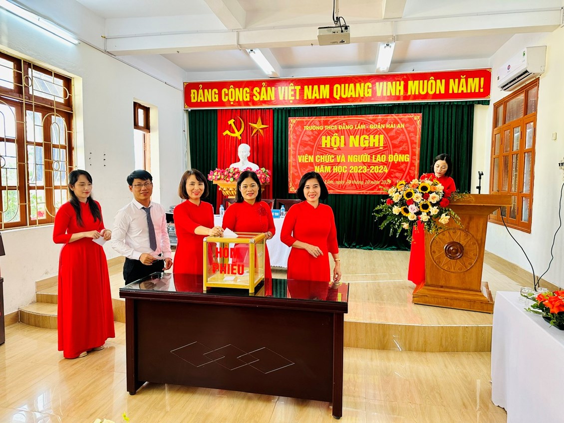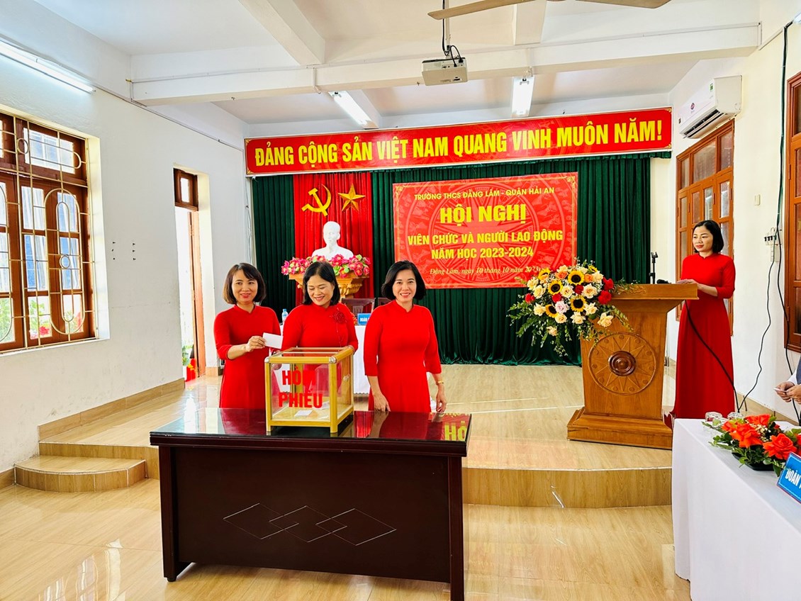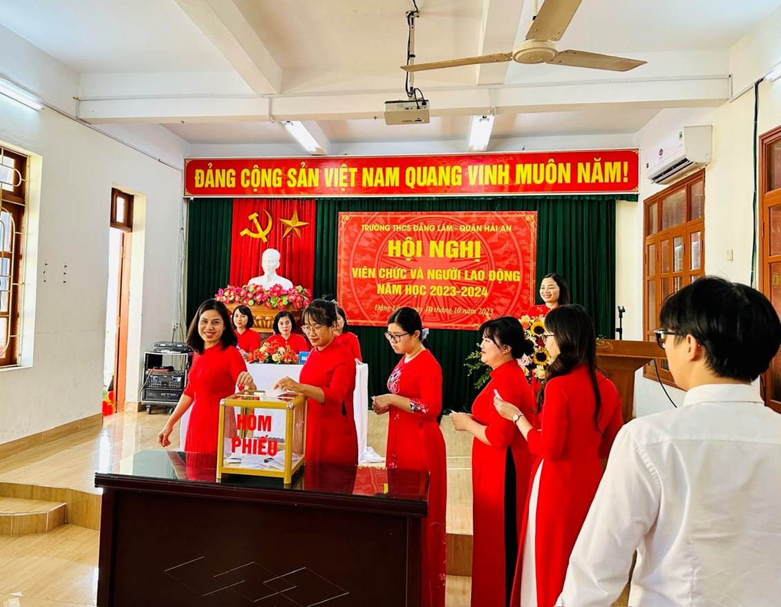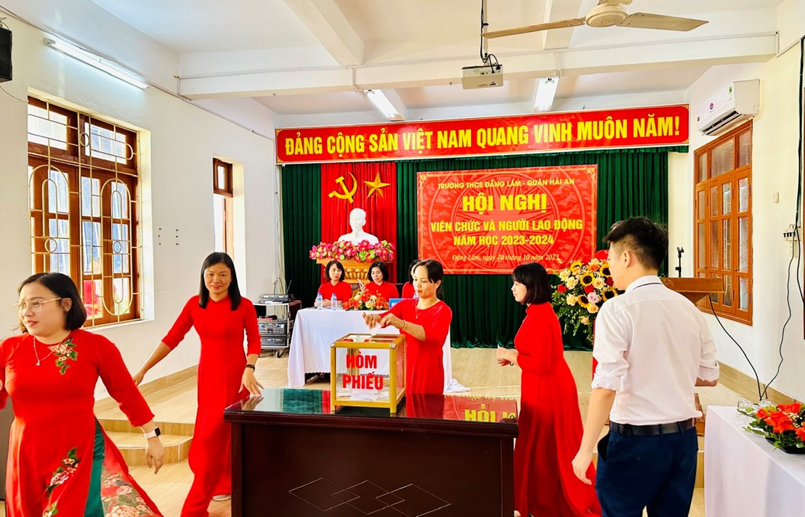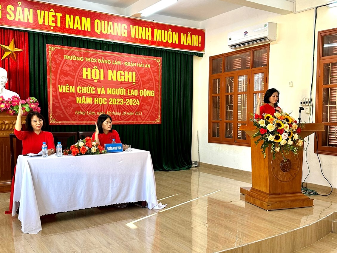 🍀Trong không khí vui tươi và phấn khởi, sáng ngày 10/10/2023, Trường THCS Đằng Lâm hân hoan tổ chức “Hội nghị Viên chức và người lao động” năm học 2023-2024. Hội nghị nhằm phát huy quyền làm chủ thực sự và năng lực sáng tạo của cán bộ, giáo viên, nhân viên trong quá trình thực hiện nhiệm vụ.