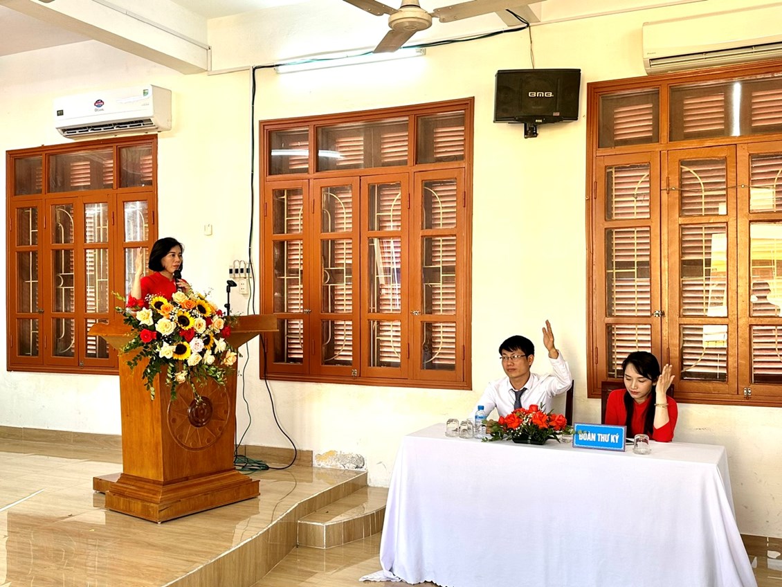 ☘️Thay mặt lãnh đạo nhà trường, đồng chí Nguyễn Thị Mai Hương - Bí thư Chi bộ, Hiệu trưởng nhà trường trình bày tóm tắt báo cáo tổng kết năm học 2022-2023 và kế hoạch thực hiện nhiệm vụ năm học 2023-2024. Với tinh thần dân chủ, tinh thần trách nhiệm, hội nghị đã tiến hành thảo luận đóng góp xây dựng hoàn thiện kế hoạch nhiệm vụ năm học. 🌻Đặc biệt, hội nghị tập trung vào các nhiệm vụ trọng tâm năm học, các mục tiêu, giải pháp nhằm nâng cao chuyên môn, đổi mới phương pháp dạy học; nâng cao vai trò của giáo viên chủ nhiệm lớp trong việc tổ chức, phối hợp giáo dục toàn diện học sinh; nâng cao phương thức giáo dục đạo đức, giáo dục ngoài giờ lên lớp, giáo dục hướng nghiệp theo tinh thần lồng ghép và tích hợp; chú trọng giáo dục kỹ năng sống cho học sinh; nâng cao chất lượng các đội tuyển học sinh giỏi, toàn thể Hội nghị đã biểu quyết các chỉ tiêu cần đạt trong năm học.