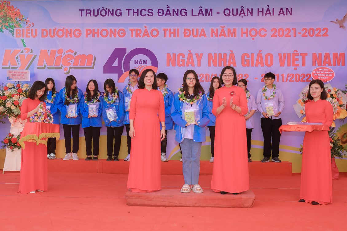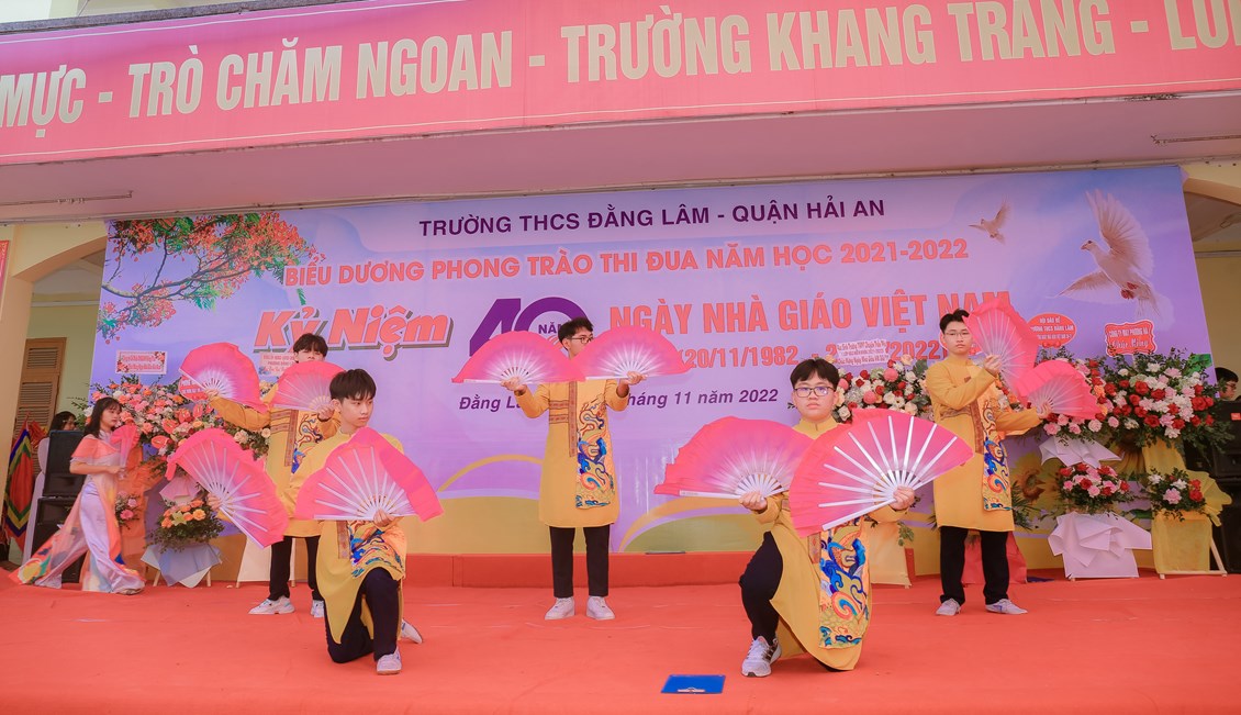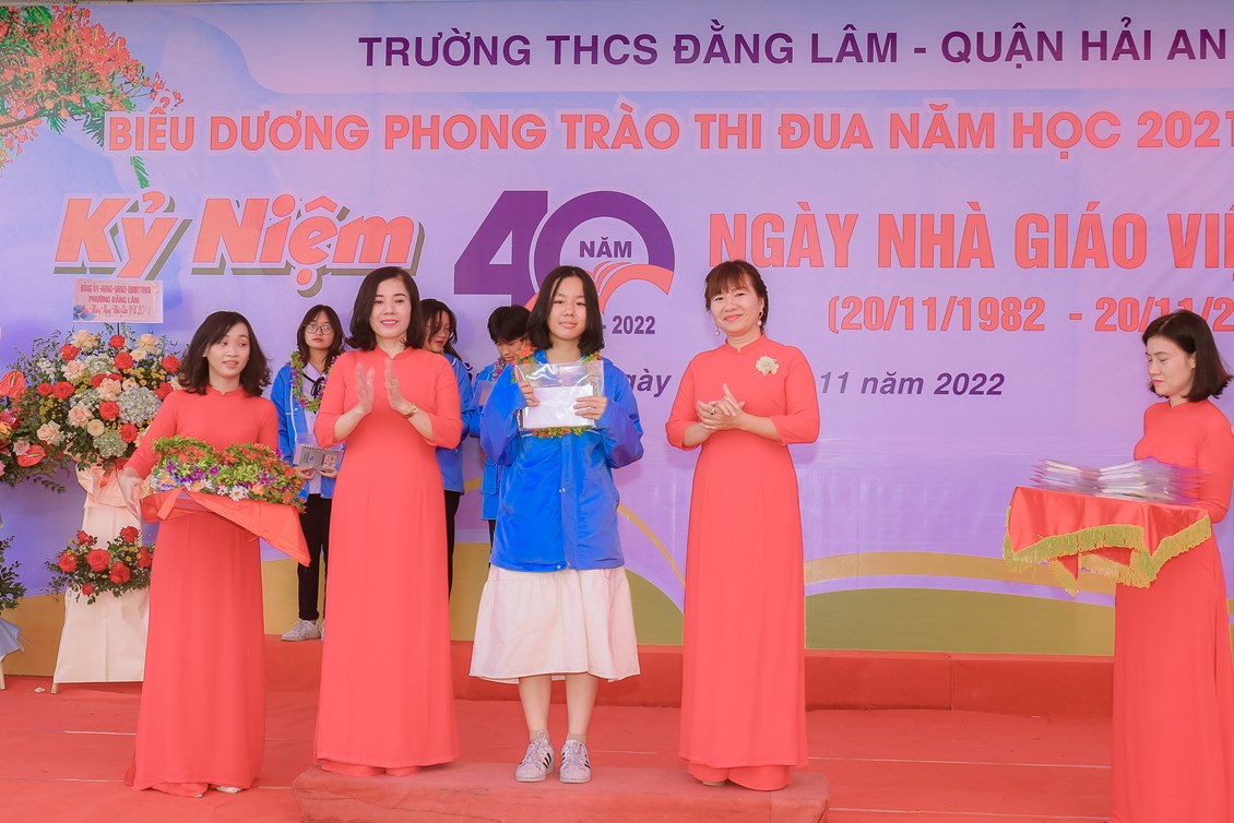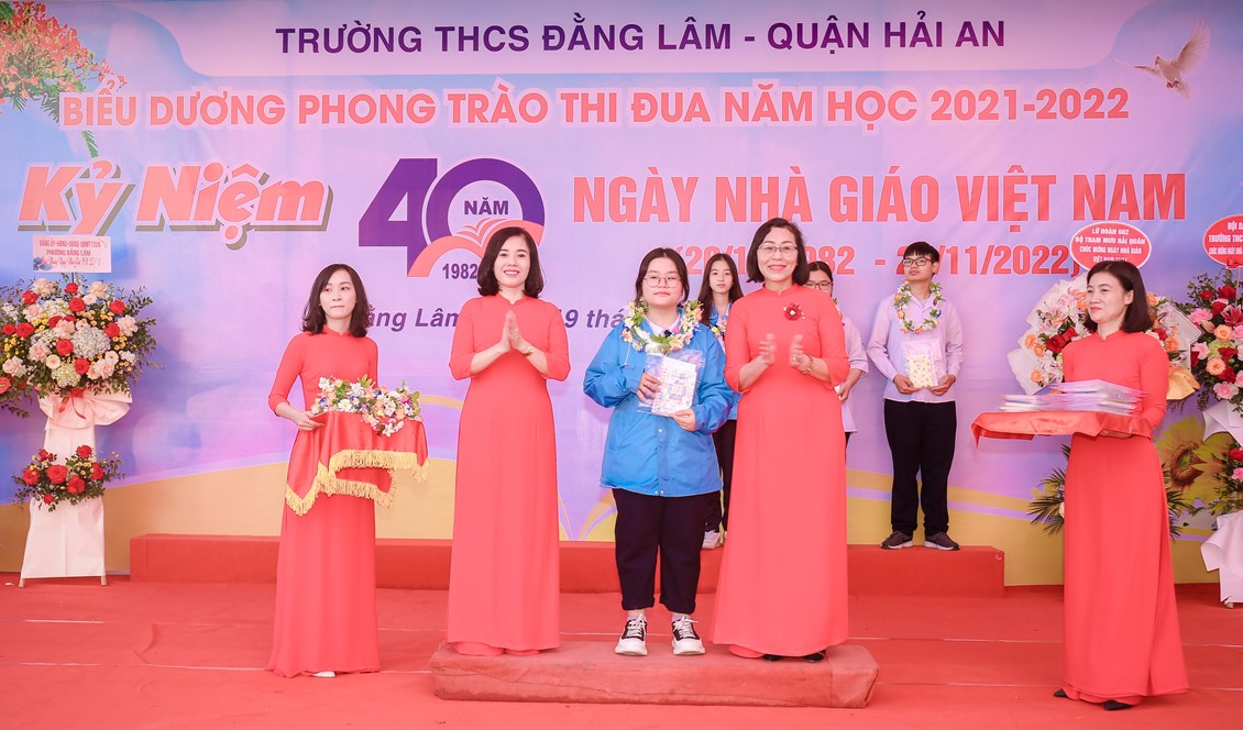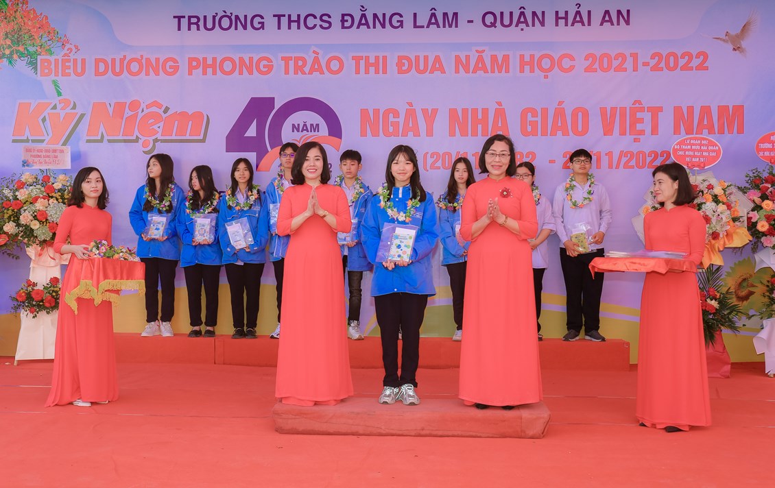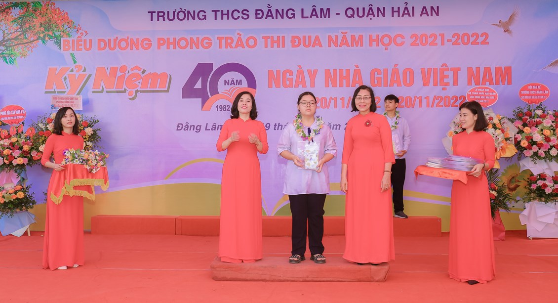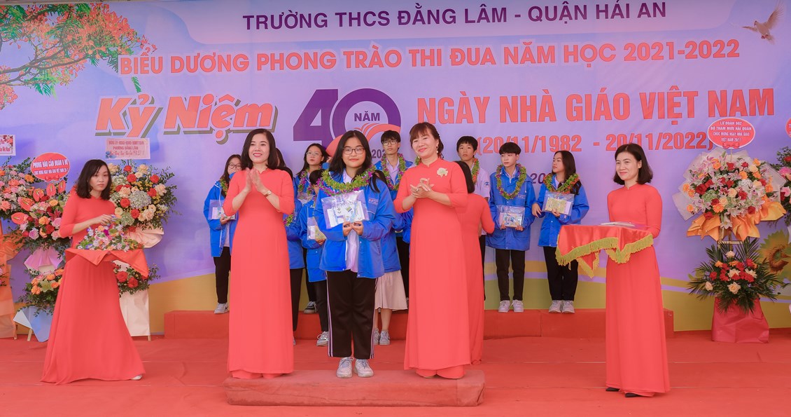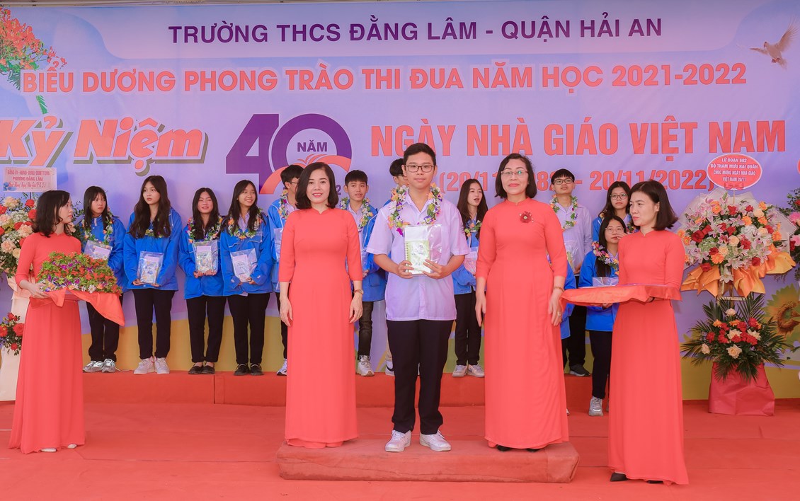 Hòa chung không khí tưng bừng, phấn khởi của ngành giáo dục cả nước kỷ niệm 40 năm ngày Nhà giáo Việt Nam (20/11/1982 - 20/11/2022) để bày tỏ lòng biết ơn sâu sắc tới các thế hệ nhà giáo, các cán bộ viên chức đã cống hiến cho sự nghiệp giáo dục và sự phát triển của nhà trường đồng thời biểu dương những tấm gương thầy cô giáo và các em học sinh có những thành tích đáng tự hào trong năm học 2021-2022 đồng thời giáo dục truyền thống Tôn sư, trọng đạo cho học sinh, từ 8h ngày 19/11/2022, trường THCS Đằng Lâm long trọng tổ chức Hội nghị biểu dương phong trào thi đua năm học 2021-2022 và kỷ niệm 40 năm ngày Nhà giáo Việt Nam (20/11/1982-20/11/2022)