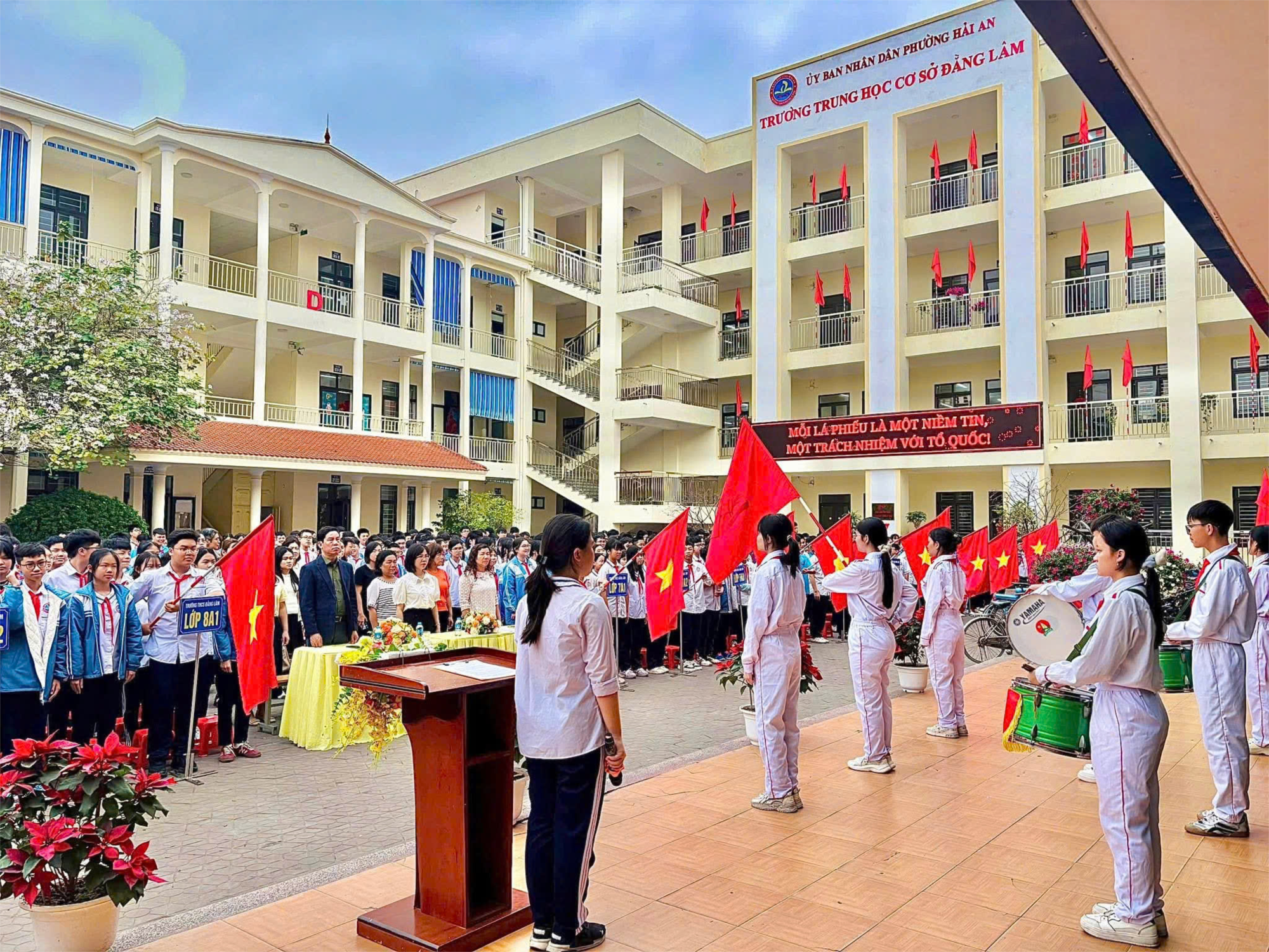 🌼 Ngày 02/03/2026, trường THCS Đằng Lâm tổ chức lễ chào cờ tháng 3. Tham gia Lễ chào cờ có: