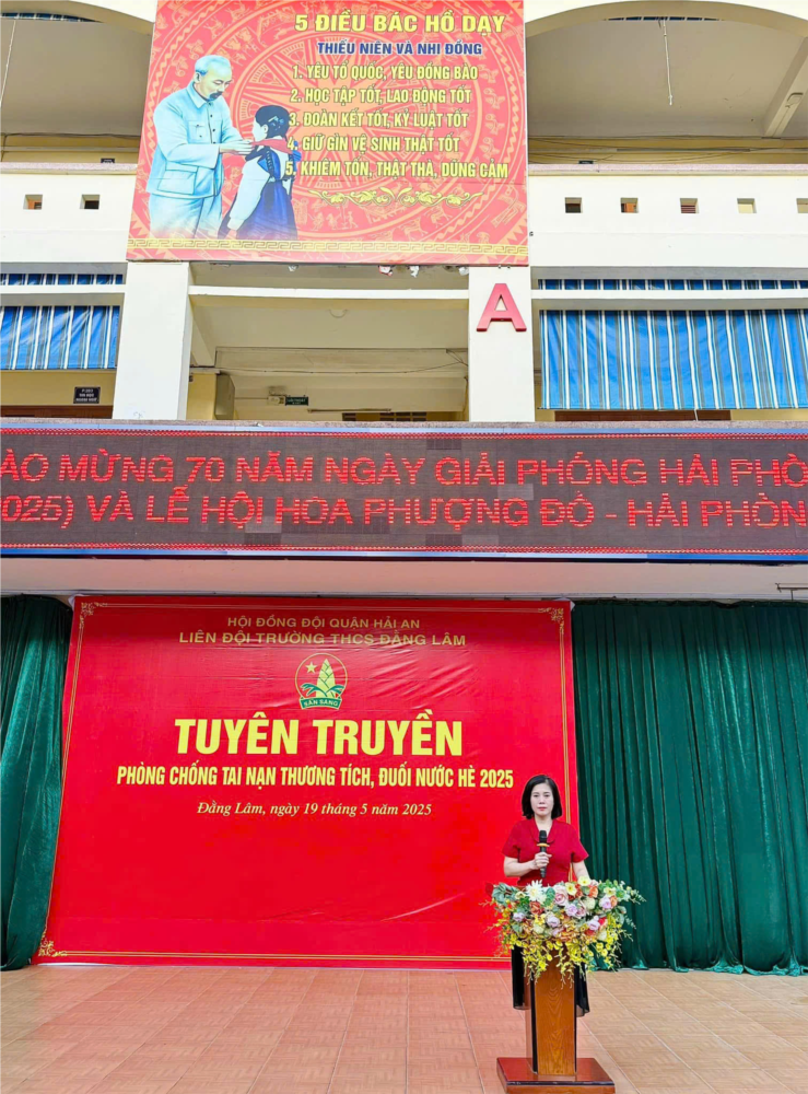 ✅Nhằm cung cấp cho học sinh hiểu biết, kỹ năng phòng chống tai nạn thương tích, bảo đảm an toàn khi mùa hè cận kề, ngày 19/05/2025, Liên đội trường THCS Đằng Lâm tổ chức buổi tuyên truyền “Phòng chống tai nạn thương tích, đuối nước hè 2025”