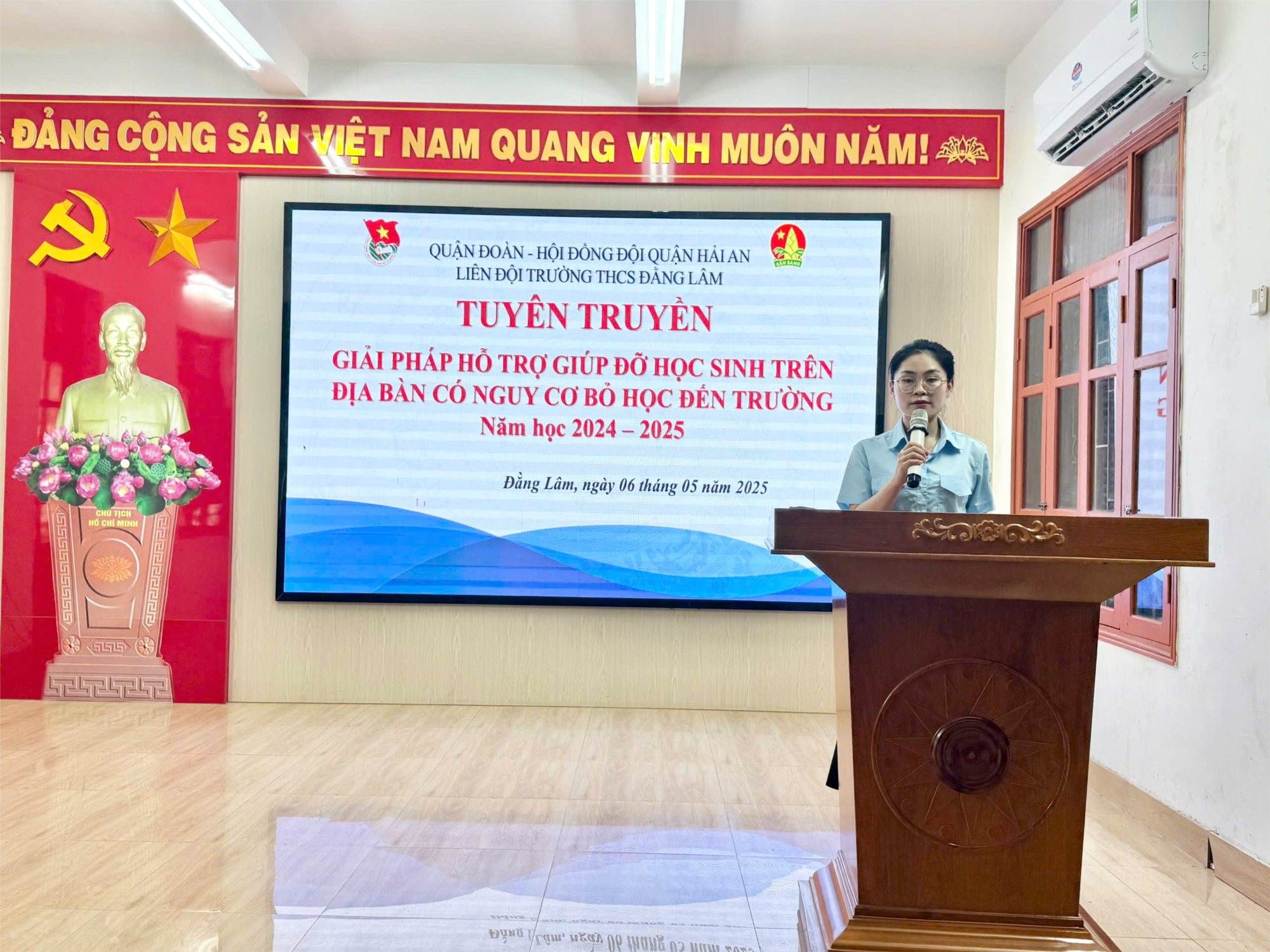 Tình trạng trẻ em, học sinh có nguy cơ bỏ học luôn là một vấn đề trăn trở của ngành giáo dục và toàn xã hội, đặc biệt tại các địa bàn còn nhiều khó khăn. Việc các em không được đến trường không chỉ ảnh hưởng đến tương lai cá nhân mà còn tác động tiêu cực đến sự phát triển chung của cộng đồng. May mắn tại trường THCS Đằng Lâm không có trường hợp có nguy cơ bỏ học. Liên đội trường THCS Đằng Lâm, đóng vai trò quan trọng trong việc phát hiện, hỗ trợ và giúp đỡ các em có nguy cơ bỏ học, đảm bảo quyền được học tập và tạo cơ hội phát triển toàn diện cho các em.