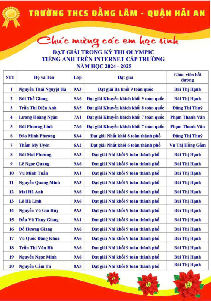 🌼HỌC SINH TRƯỜNG THCS ĐẰNG LÂM ĐẠT GIẢI TẠI KỲ THI OLYMPIC TIẾNG ANH TRÊN INTERNET CẤP TRƯỜNG NĂM HỌC 2024-2025🌼