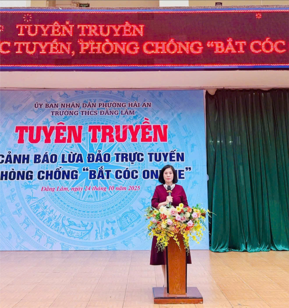 Căn cứ kế hoạch giáo dục năm học 2025-2026 của trường THCS Đằng Lâm, chiều ngày 24/10/2025, trường THCS Đằng Lâm tổ chức hoạt động Tuyên truyền Cảnh báo lừa đảo trực tuyến, phòng chống “bắt cóc online”.